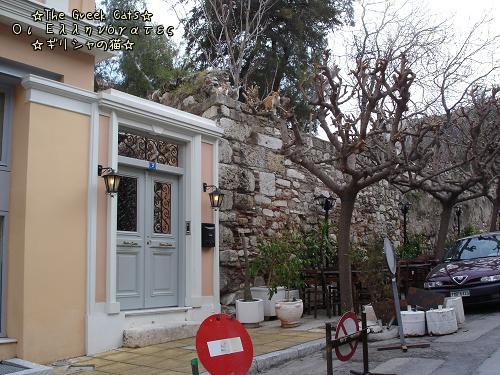 エオル通り側のハドリアヌス図書館遺跡の上ににゃんこがいました。