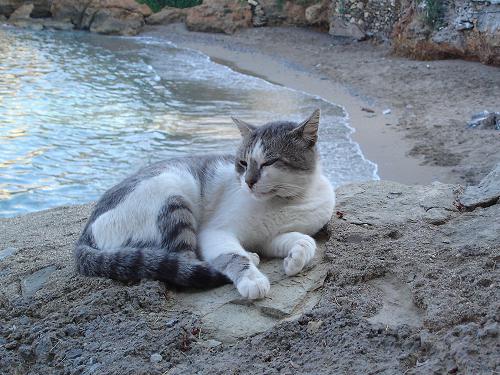 このモフロス海岸には白と灰色の二色猫が多かった!