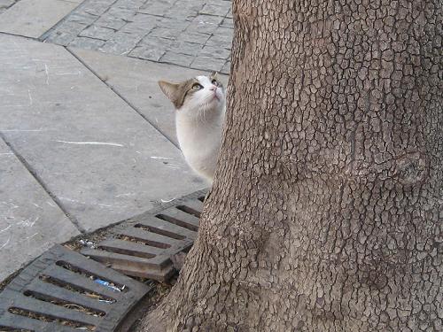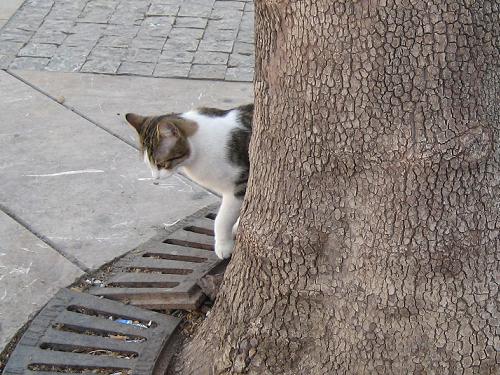 この木に登りたいけど、にゃんこの足場がにゃぁ。
