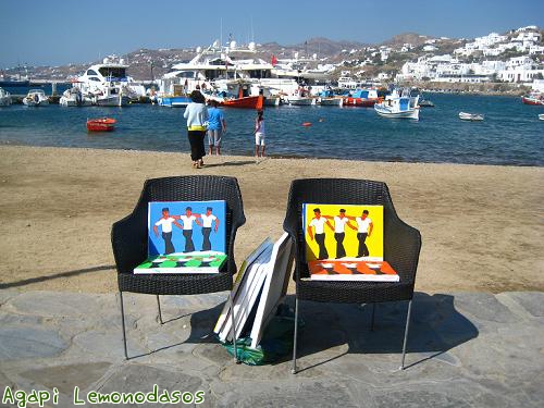 あれ、海岸にこの店の椅子を出して絵を並べて売る人、発見!