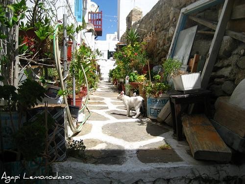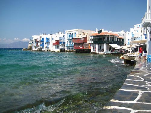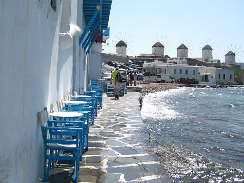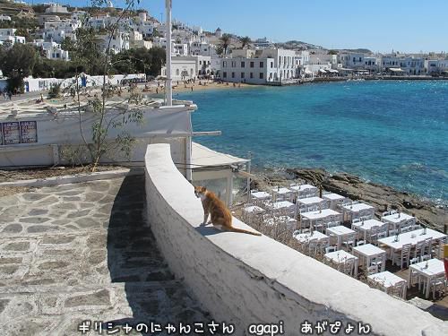 ミコノス島は経済危機とは無縁。肩がぶつかるほどの観光客が来てるにゃ。