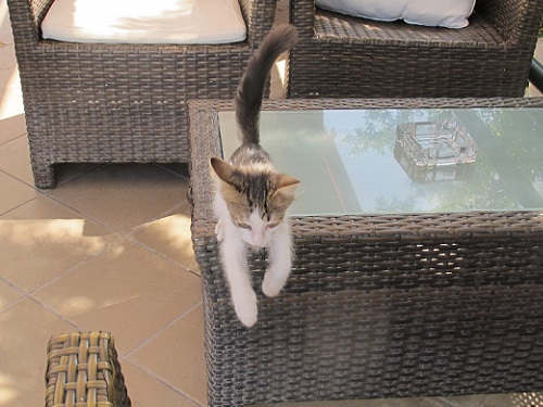 そのホテルの仔猫がかわいい。客席から客席をジャンプ移動。