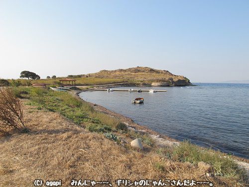 レスボス島には石ころ海岸が多いよね。泳ぐとしたら、