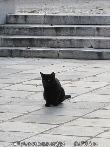 この二匹の黒猫の飼主は小教会裏にいるのホームレスの老女。